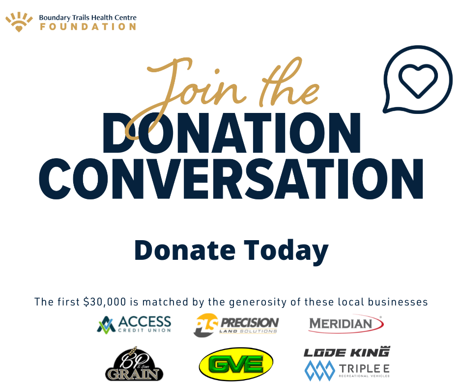 The Donation Conversation will continue over the next few months. To learn more, click on the Donation Conversation page for Boundary Trails Health Centre Foundation.