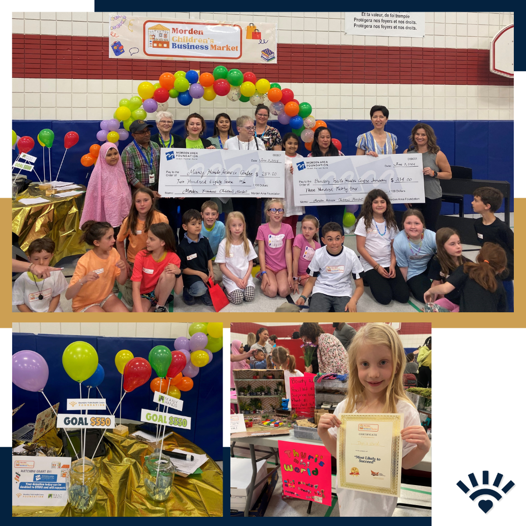 Morden Children’s Business Market was hosted at Maple Leaf Elementary School on June 3rd. from 5-6 PM (flyer attached). Students from kindergarten to grade 4 created a brand a products to sell at the one-day market. The market gave children the opportunity to learn basic business principals and the importance of philanthropy. Throughout the evening, students and shoppers were encouraged to donate to the BTHC Foundation or Many Hands, and the total contributions were matched by the Morden Area Foundation.
