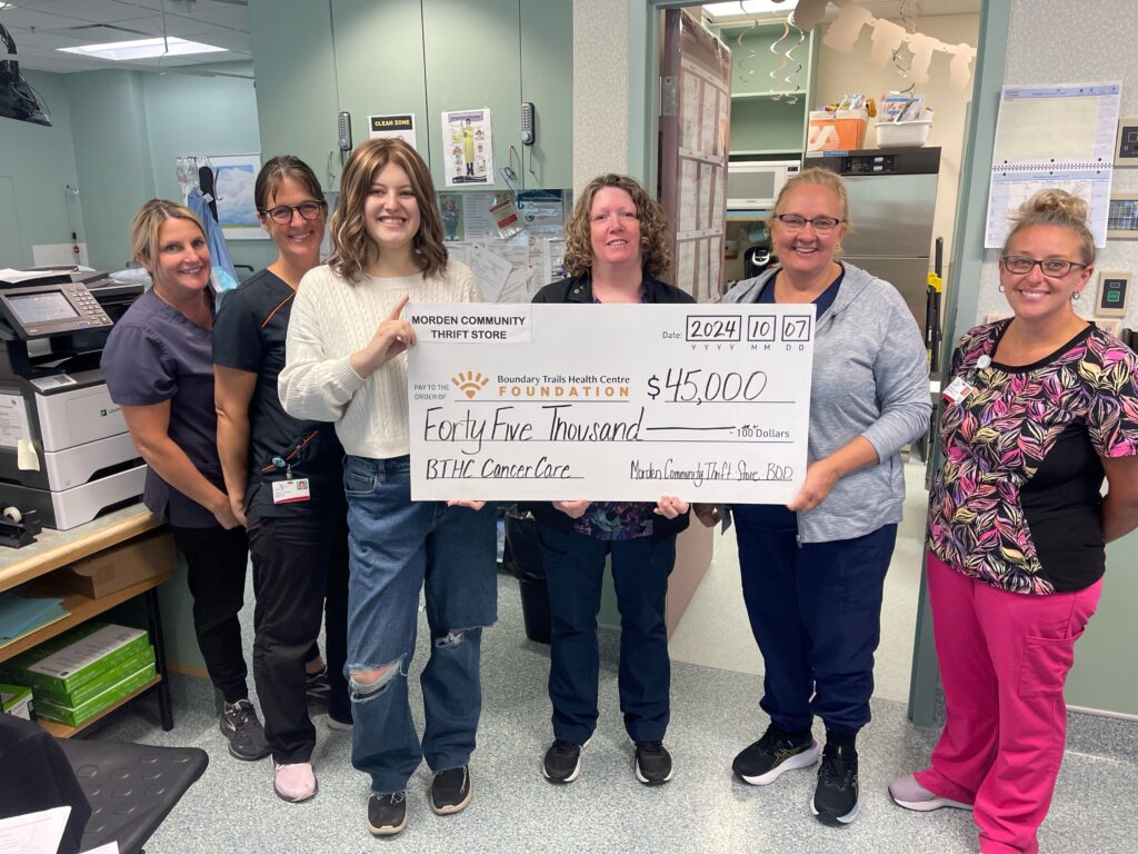 It was a special day this week as the BTHC Foundation received an incredible $45,000 donation from the Morden Community Thrift Store as part of their fall granting. The thrift store gave back $211,000 to a variety of community groups and local causes this fall and the BTHC Foundation is humbled to be among those chosen.